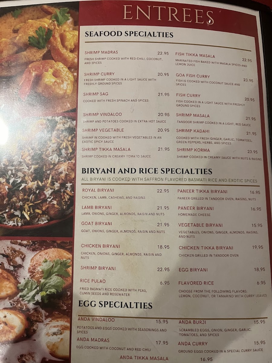 The menu is a treasure trove of delectable dishes that cater to both vegetarian and non-vegetarian preferences. Highlights include the Vegetable Kashmiri, a symphony of fresh vegetables suspended in a delicately spiced sauce adorned with nuts and cream, priced at just US$15.95. For cheese lovers, the Paneer Bhurji is a must-try, featuring grated cheese sautéed with onions and spices for US$19.95. Meaty choices like the Chicken Kadai and Goat Curry have received numerous accolades from satisfied customers, painting the picture of culinary excellence.